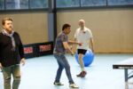 La soirée a ensuite été l’occasion pour les 15 équipes représentées de découvrir le tennis de table, l’ultimate ping, la boccia, le soft archery et d’effectuer un parcour en fauteuil roulant, ce qui n’a pas été simple pour tout le monde. Un cocktail dinatoire était offert par le club et les joueurs présents se sont bien amusés et c’était là l’essentiel.