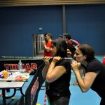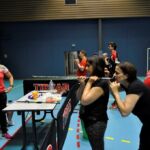 La soirée a ensuite été l’occasion pour les 15 équipes représentées de découvrir le tennis de table, l’ultimate ping, la boccia, le soft archery et d’effectuer un parcour en fauteuil roulant, ce qui n’a pas été simple pour tout le monde. Un cocktail dinatoire était offert par le club et les joueurs présents se sont bien amusés et c’était là l’essentiel.