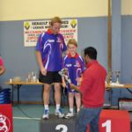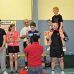 Tout le monde s’est bien amusé et les parents même non pongistes se sont pris au jeux. Notre nouveau podium a été étrenné par la famille de son concepteur et artisan réalisateur, car chez les moins de 10 ans c’est Lison et Anthony qui montent sur la plus haute marche du podium, et chez les plus de 10 ans Adrien avec Carmello (car son papa engagé avec sa fille, aussi à la table de marque et à l’organisation, avait exceptionnellement laissé ses 3ème et 4ème bras à la maison).