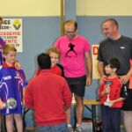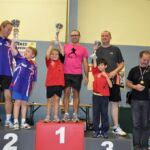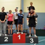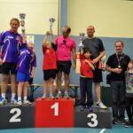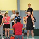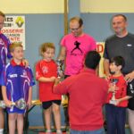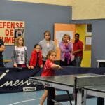 Tout le monde s’est bien amusé et les parents même non pongistes se sont pris au jeux. Notre nouveau podium a été étrenné par la famille de son concepteur et artisan réalisateur, car chez les moins de 10 ans c’est Lison et Anthony qui montent sur la plus haute marche du podium, et chez les plus de 10 ans Adrien avec Carmello (car son papa engagé avec sa fille, aussi à la table de marque et à l’organisation, avait exceptionnellement laissé ses 3ème et 4ème bras à la maison).