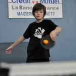 Edouard Porte est aussi à mettre à l’honneur. Il nous a fait une énorme compétition! A la traîne l’année dernière, Edouard a rattrapé son retard sur les tout meilleurs. En poule il écarte notamment Kilian Tanski de Thionville, et Maxime Kreamer de Metz TT. Il est invaincu jusqu’à la demi-finale. Il sort au passage Théo Demarne de Montigny en quarts qui était l’an passé au Top de Zone. En demi-finale, il s’incline face à Sohan Gilles de Neuves-Maisons, futur vainqueur et un cran au dessus d’Edouard. Pour la 3ème place, il sort un match incroyable…. Des coups venus d’ailleurs, parfois involontaires! Il sauve une balle de match et gagne 12-10 à la belle!! Il arrache une jolie médaille de bronze, sa première médaille dans une compet FFTT. Felicitations!!