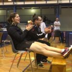 La bataille avait débuté à 10h00 et avait duré 3h45, les autres rencontres étaient terminées depuis plus d’une heure et nous devions débuter la finale à 14h00. Les juges arbitres ont été cléments et nous ont laissé une demi-heure pour manger avant d’attaquer la finale. Eva, épuisée a laissé sa place à Charlotte pour faire entrer du sang neuf dans l’équipe. Nous avons la chance d’avoir une belle équipe soudée et les filles savent se faire confiance et se relayer pour avoir un maximum d’efficacité. La finale parait sur le papier déséquilibrée car nous avions déjà battu Chalons en matchs de poule et aux points individuels nos joueuses sont largement favorites.
