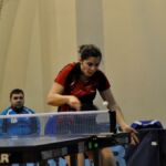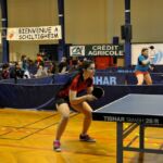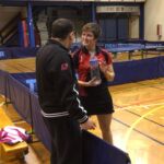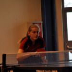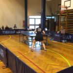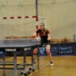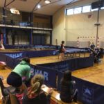 La composition des équipes a été déterminante et Neuves-Maisons avait réparti les joueuses d’une manière inédite, ce qui allait nous causer du fil à retordre. Il y a 14 rencontres et la première équipe à 8 a gagné. Nous avons extrêmement mal débuté la partie, nos maizièroises étant extrêmement tendues tétanisées par l’enjeu, et nous étions menés 5-1. Emmanuelle Hym a sonné la révolte et petit à petit, nos filles se sont reprises et ont grappillé point après point. Nous revenions ainsi à 5-3, juste avant un moment déterminant des doubles. Là, Jérome le coach et Manue la capitaine tentent un coup de poker dans la composition des doubles en associant Marion Schmitt à Eva Brenik dans le double dit fort et Manue jouant avec Sarah Helck dans le double faible. Cette stratégie a été payante car nous gagnons contre toute attente les 2 doubles et nous revenons à 5-5 avec en théorie 3 matchs faciles pour nous derrières sur les 4 restants. Mais la réalité nous a fait revenir sur terre avec une défaite inattendue de Sarah Helck qui était vraiment crispée par l’enjeu et qui jouait en même temps que Manue. Nous revenions donc à 6-6 avec 2 rencontres à jouer pour Eva et Marion, Eva jouant la joueuse de loin la plus forte en face. La rencontre de Eva débute bien, elle mène 2-0 contre toute attente et c’est l’inverse pour Marion. Dans son troisième set, Eva mène 9-7 et est à 2 points de la victoire avant de s’effondrer et de perdre la rencontre. 7-6 pour Neuves-Maisons. Marion revient petit à petit et dans une belle extrêmement serrée gagne par 14-12(!) après avoir sauvé 2 balles de matchs pour son adversaire. 7-7 et on se met à compter les sets et les points. Manue est dépitée car elle affirme que Neuves-Maisons a gagné d’après ses totaux, mais le verdict du Juge-Arbitre est sans appel : Maizières a gagné par 30 sets à 29 ! Maizières est en finale face à Châlons-en-Champagne qui crée la surprise en battant Reims qui était certes venu diminué. Le Président saute de joie.