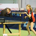 En l’absence de pas mal de blessé(e)s, ce sont tout de même 7 maizièrois qui se sont rendus à Vittel dans l’immense salle où ils ont pu montrer leur talent sur le 46 tables mise à disposition. Carolanne a eu l’occasion de toucher pour la 1ère fois à cette compétition et même si ce fut difficile, elle ne retient que les belles balles qu’elle a pu jouer. Adrien pour sa première à ce niveau de compétition a également pu mesurer l’adversité. Edouard a fait 2 fois mieux que lors de la 1ère journée en finissant 8ème. Morgane a eu fort à faire et fini 6ème. Marion, un peu minée par la pression fini tout de même à une belle 3ème place. Sarah, également à un pas de la montée en National finit 2ème. Quant à Guillaume, il était vraiment à un cheveux, ne perdant que par 11-9 en finale. Guillaume, Sarah, Marion, la prochaine sera la bonne !