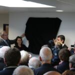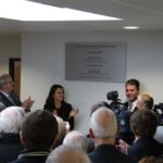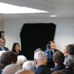 Après avoir retracé l’historique de la construction qui pour ses balbutiements remonte à 1988, salué le dynamisme de la ville et de notre club qui en sera le club résident et au terme d’un hommage émouvant de Julien Bommersheim, les élus ainsi Julien et Sébastien, les enfants de Joël et Brigitte sa femme ont découvert la plaque qui donne le nom de Joël Bommersheim au gymnase.
