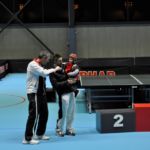 Nos pongistes se sont affrontés en double sur 4 tables réunies, ce qui les a fait cavaler… Ce soir les bras sont endoloris, mais les calories engrangées à Noel ont été dépensées et tout cela dans la bonne humeur. Le palmarès de ce 1er tournoi a vu 2 thionvillois monter sur la 1ère place avec la victoire de Steph et Cédric face Chanzy et Juju, nos Maizièrois qui avaient préféré ne pas fêter Noel en famille pour venir s’entrainer comme des malades. Sur la 3ème place on retrouve Erwan et Julien (encore un).