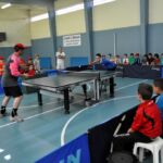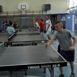 La finale, opposant Louis et Sam, les éducateurs, a vu Louis s’imposer par 14-12 et la troisième place est revenue à Stéphane, lui aussi mis hors classement car trop fort pour les jeunes stagiaires. Le premier jeune récompensé par une médaille a été Hugo Marchal et pour sa belle prestation, Christophe PORTE, notre président lui a offert une raquette dont il fera certainement bon usage. Fabrice Will et Kilian Callagari ont complété le podium et ont aussi été médaillés. A noter que Quentin Oberbilic a également été récompensé d’une médaille pour sa victoire de la consolante.