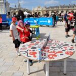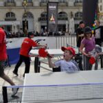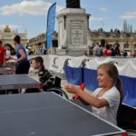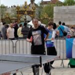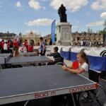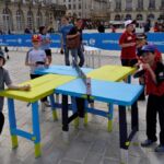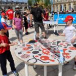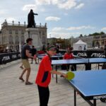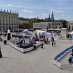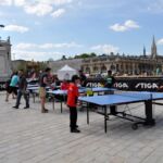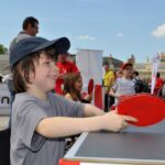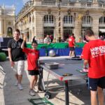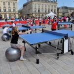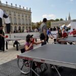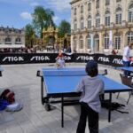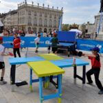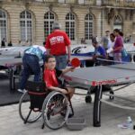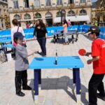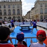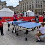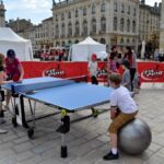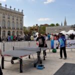 Sous un soleil radieux et dans le cadre merveilleux de la place Stanislas, la promotion du tennis de table et du Mondial qui aura lieu à Bercy le mois prochain a permis à nos jeunes (et moins jeunes) de découvrir différents univers. Nous avons été du fun ping, où les tables sont déstructurées et rigolotes, au fit ping tonic où les filles se sont éclatées, en passant par l’espace handiport, baby ping et haut niveau où nos jeunes ont pu voir une démonstration de l’équipe de France et rencontrer Laura Gasnier de l’équipe nationale qui a gentiment acceptée d’être prise en photo.