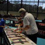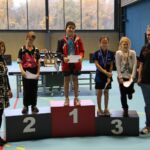 Sous les lumières des projecteurs, nous retrouvons comme à son habitude Lison THIERRY qui remporte le top départemental de Moselle en filles nées en 2006 pour la 3ème année consécutive. A 8 ans elle fait bientôt partie des vielles de la compétition… Dans la catégorie reine des garçons nés en 2005, nous retrouvons à nouveaux des Maizièrois au sommet avec une finale 100% Maizières, Guillaume WEBER remporte brillamment le top départemental pour la 2ème année consécutive devant Edouard PORTE qui gagne 1 place par rapport à l’an passé et surtout qui a battu dans un beau match Maël de Manom sa bête noire. A noter un beau tir groupé car nos 2 maizièrois devancent 4 manomois.