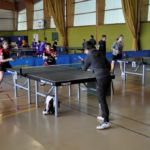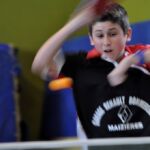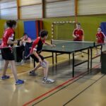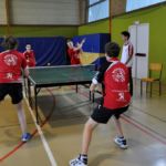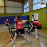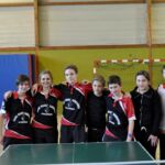 Charlotte, William, Adrien, Sarah, Colin nos joueurs de Maizières et Andréa et Paul, les Jeunes Officiels de Sainte-Marie se sont rendus à Bains-Lès-Bains ce mercredi 16 avril 2014 pour défendre leurs chances de qualification aux finales du championnat de France. Ils rencontraients les meilleures équipes d’Alsace, de Franche-Comté et bien sûr de Lorraine.  Les Maizièrois étaient 5èmes aux points classement et ont finalement terminé 5è de la compétition. Leurs matchs de poules étaient très compliqués avec 2 défaites, la première contre le collège de Fraize avec une nouvelle défaite 3-2 comme en finale de l’académie mais sur tapis vert après un soucis de composition d’équipe et la seconde 4-1 contre le Collège Jean XXIII de Mulhouse mais non sans avoir accroché les matchs. Le match de classement a été une formalité avec une victoire 4-1 contre les Francs-Comtois de Bethoncourt.