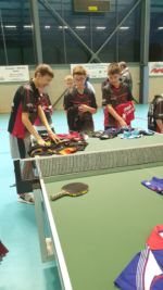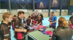 Toujours en relation avec Jérome Sanchis, son premier coach qui lui a transmis la passion du ping, il nous a fait l’amitié de venir participer à une séance d’entrainement avec nos jeunes du groupe des débutants et a offert ses anciens maillots de l’équipe de France qu’il a porté fièrement lors des compétition internationales. Cette distribution a fait la joie de nos jeunes pongistes qui ont apprécié la simplicité de Vincent et surtout de pouvoir échanger quelques balles avec un champion de ce niveau.
