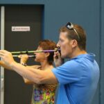 Emmanuelle Hym, notre coach spécialisée dans le sport adapté proposait différents ateliers avec bien évidemment du tennis de table, mais aussi de la sarbacane, de la boccia et du pilotage d’une mini montgolfière.