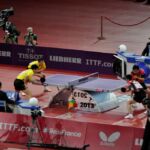 Arrivés sur place, avec pour certains à la chevelure hirsute en profitant pour passer l’entièreté de leur courte nuit dans la voiture entre Metz et Paris, direction l’intérieur de POPB pour voir du beau spectacle avec Timo Boll, Ding Ning, Ma Long, Wang Hao, Zhang Jike, Xu Xin, etc.. Comme on pouvait s’y attendre les chinois avaient pris leurs aises et surclassaient toutes les nations en plaçant pas moins de 4 hommes et 4 femmes dans les demi-finales. Seul le titre du double leur échappe aux profits des voisins de Taipei. Nous avons vu des matchs de haut niveau dont les 1/4 et 1/2 finales simple homme, la finale femme et la finale du double masculin.