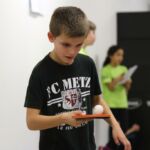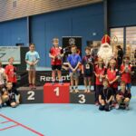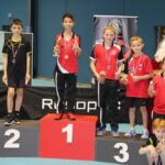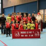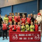 L’atelier baby ping a été un succès ne désemplissant pas de la journée et les tableaux organisés par groupe de niveau mêlant les âges et les garçons et les filles a permis à chacun de jouer à son niveau. Beaucoup de débutants étaient présents et ils découvert avec intérêt la compétition. Coté Maizièrois, sur les 4 tableaux, Guillaume Weber remporte le tableau le plus relevé et Edouard Porte termine 3ème perdant Guillaume en 1/2 finale. Nicolas Schmitt remporte également son tableau après une belle finale très accrochée. Les 18 jeunes maizièrois prenant part à cette compétition ont dans l’ensemble eu de bons résultats, ils seront publiés prochainement sur le site du CD57. Cerise sur le gâteau, le CD57 avait contacté St Nicolas qui est venu remettre les trophées et a offert à chaque participants un petit cadeau et un pain d’épices à son effigie. Voici les 4 podiums : Podium avec Guillaume et Edouard :